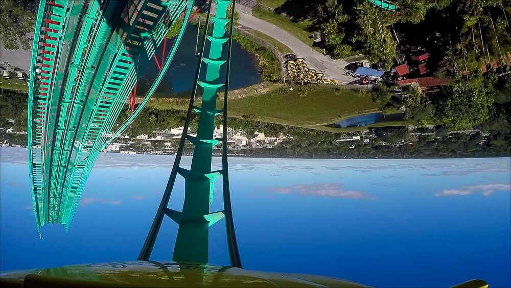 Kumba slows as it crests the vertical loop giving riders a few moments
