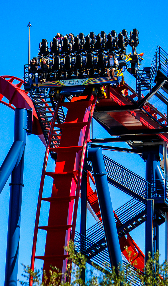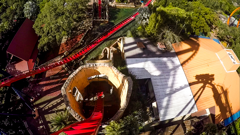 Speeding out into the light SheiKra from the tunnel you are airborne