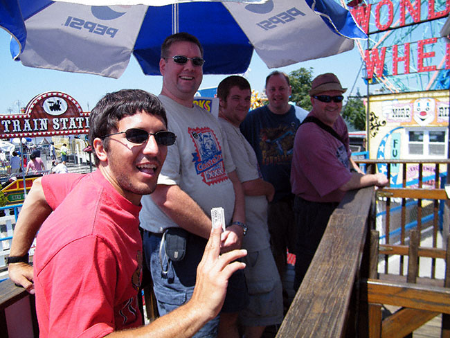 Here's the bunch of us getting ready to tackle the Sea Serpent and of course add one more notch to out coaster counts.