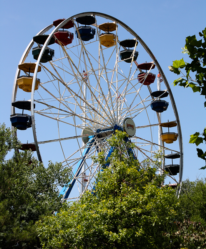 The Grand Centennial Ferris Wheel sits on a hill in the middle of