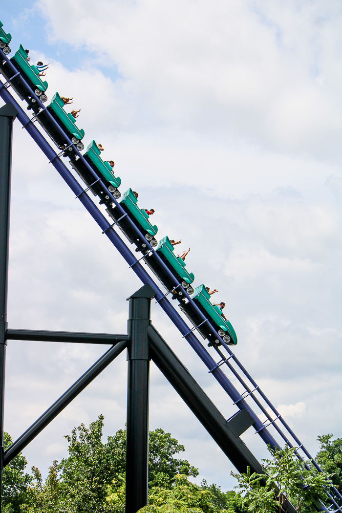 Arrow's standard sized vertical loop, a boomerang, and a corkscrew that