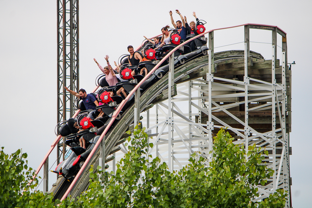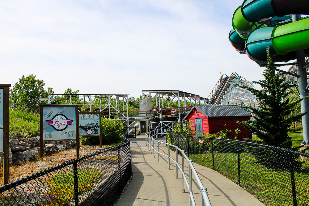 The Kentucky Flyer is the newest of Kentucky Kingdom's coasters having opened up in 2019.