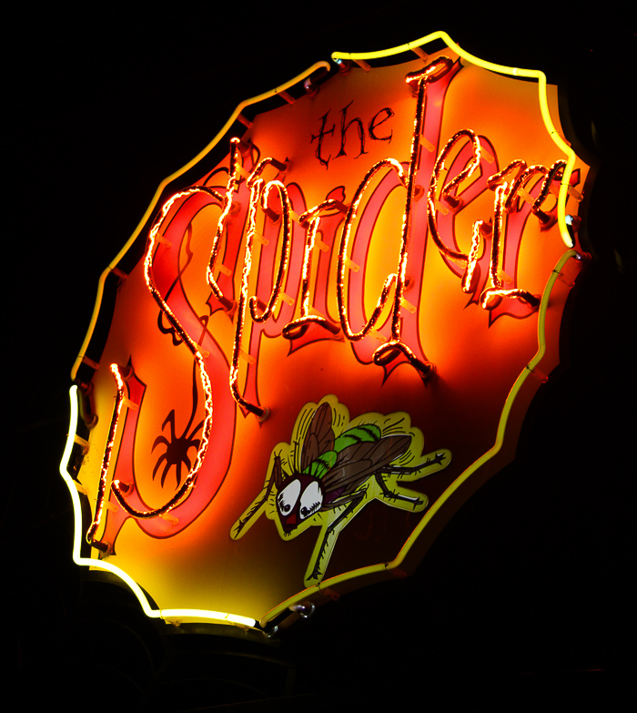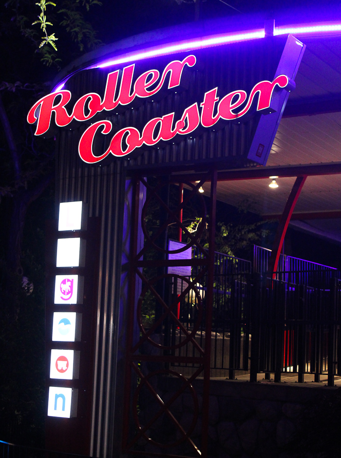 As darkness descended Roller Coaster's sign began to glow...