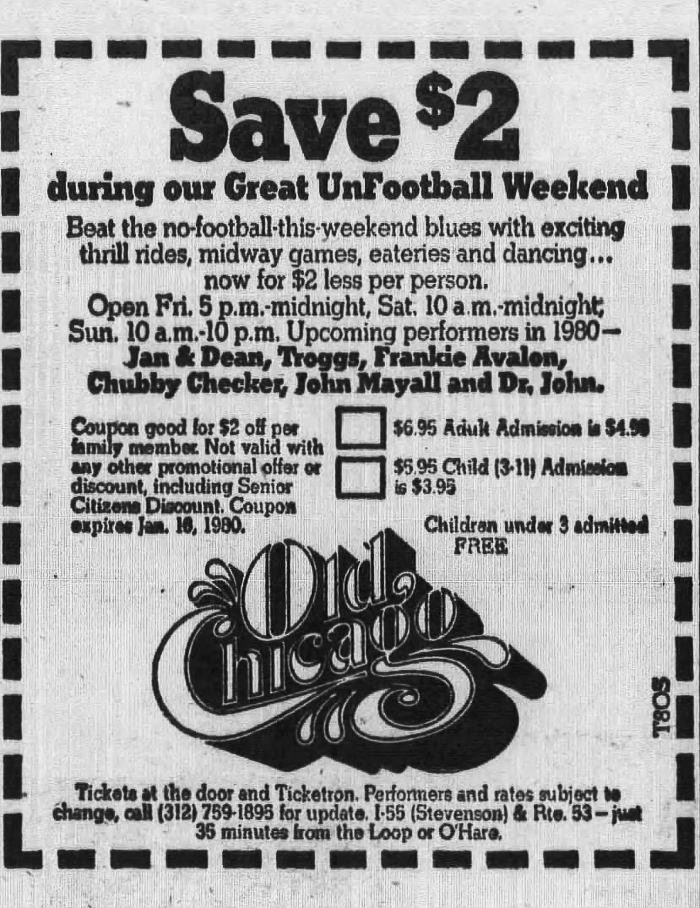By 1980 admission to Old Chicago was normally $6.95 but with this coupon