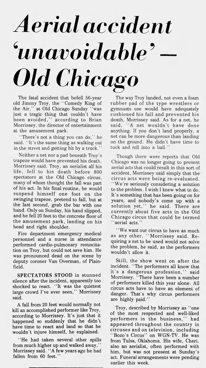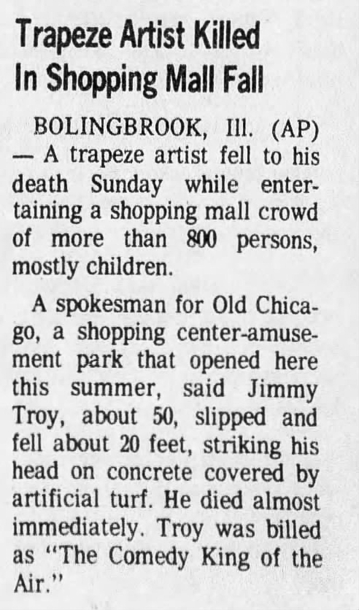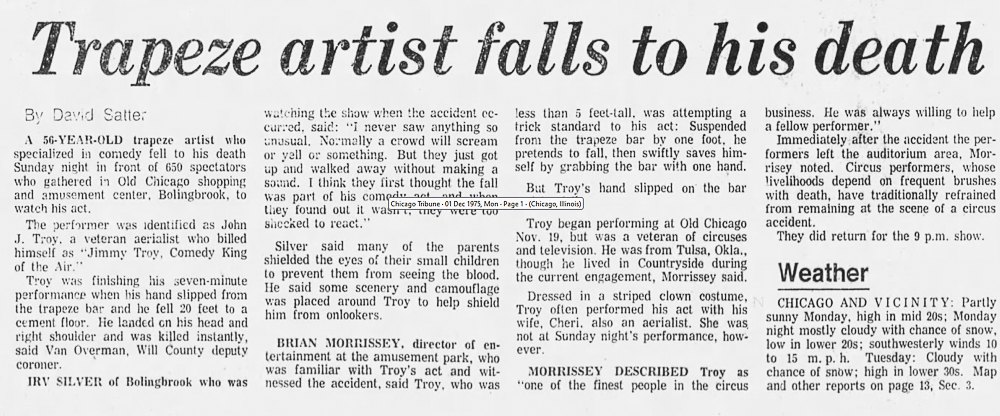 Jimmy Troy "The Comedy King of the Air" slipped and fell to his death in