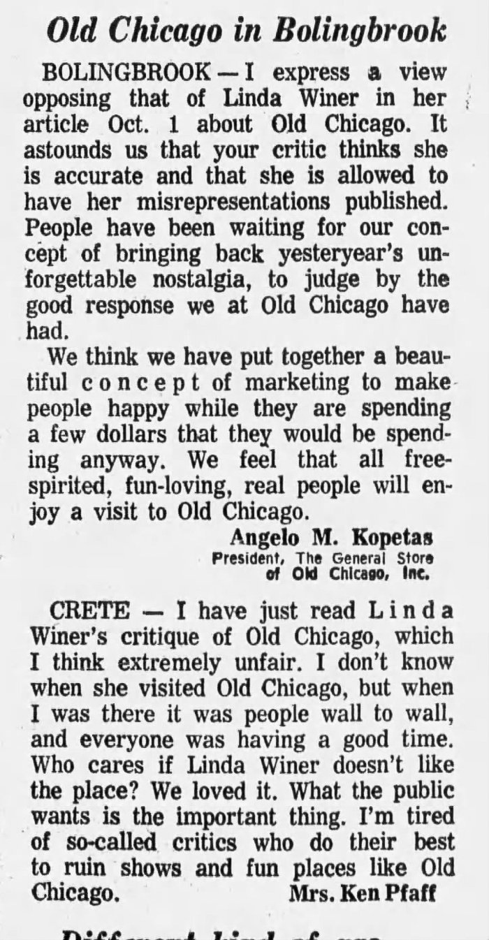 Once open Old Chicago started getting press including articles like this