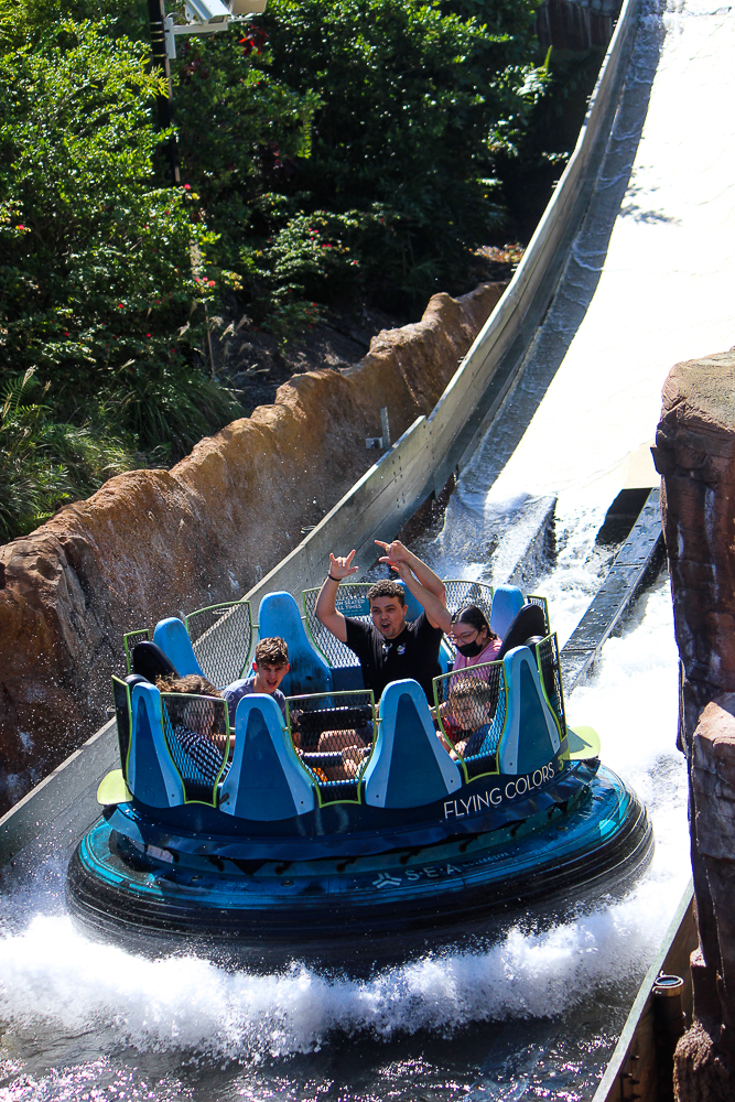 you down a class 4 rapids the ride has a forty foot plunge for a