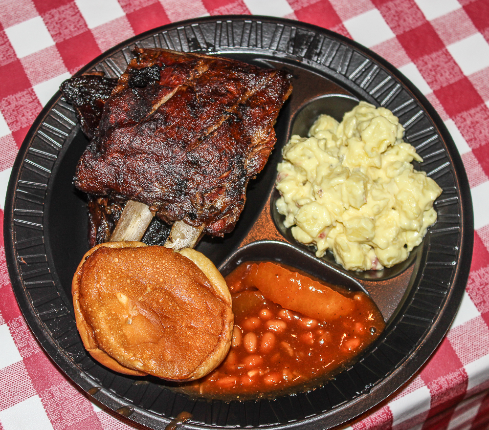 I went for ribs with a biscuit, potato salad and some baked beans with