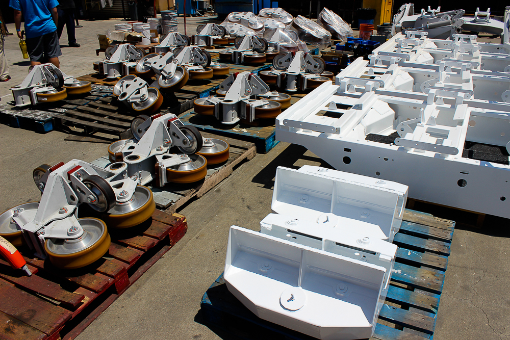 here is the second train that's in pieces on pallets.