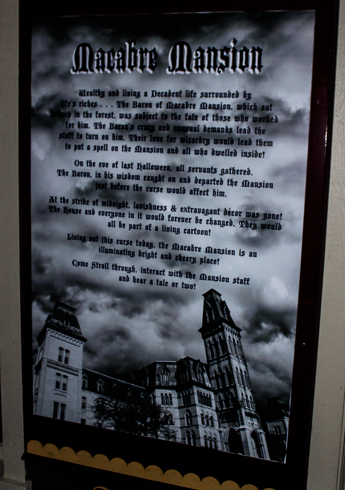 Stepping inside you are actually placed in a living cartoon as Macabre Mansion