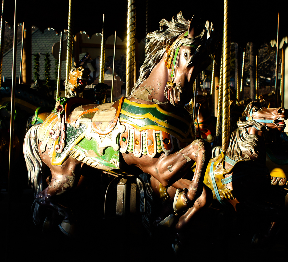Each of the horses and chariots on the Grand Ole Carousel are hand