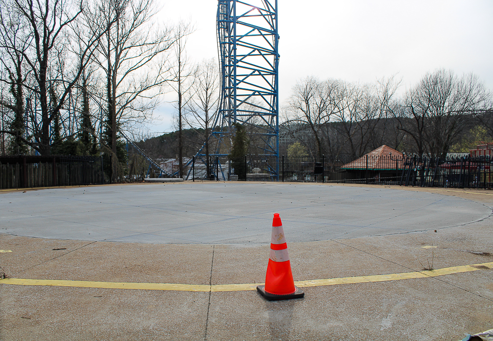 The pad for the long inoperable Excalibur ride has been filed in.
