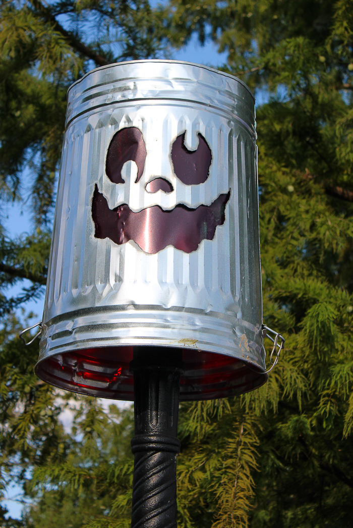 jack o lantern faces on them, put a red or orange light in them and