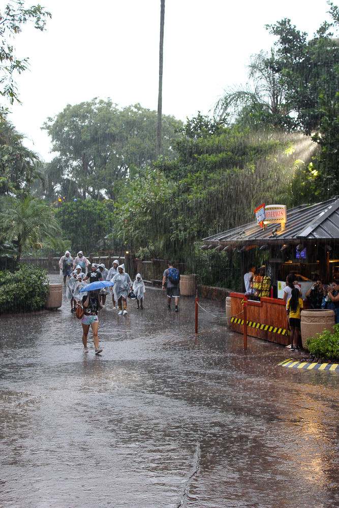 Potter and the Forbidden Journey as they run in the rain with the rides